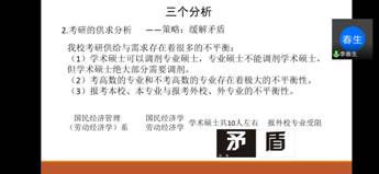 历时两个半小时的考研专题辅导座谈会圆满结束,这是国民经济管理(劳动经济学)系成立以来,组织的第六场讲座和第四次考研辅导活动。本次座谈会的成功举行,帮助同学们坚定了信念,统一了认识,明确了目标,掌握了方法,为今后的复习备考打下了坚实的基础。