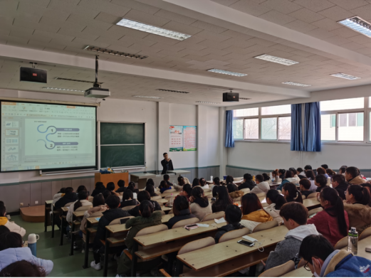 在笃行楼201教室举行了一场别开生面的毕业生交流分享会。主持本次分享会的是王莉老师,主讲是人学院优秀毕业生韩超。学院部分老师及全体2017级本科生参加了此次活动。